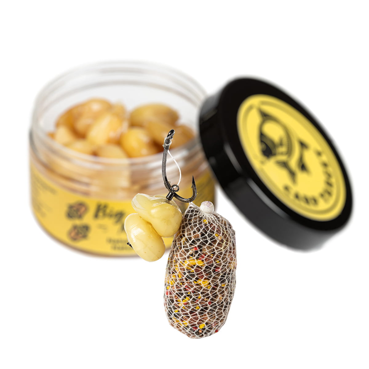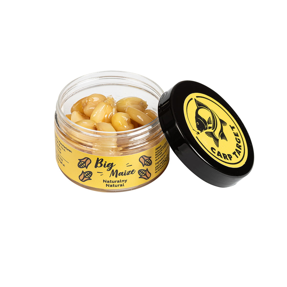 Die Hakenköder Riesenkorn Natur sind ein beliebter Köder unter Anglern, die Karpfen oder Amur fangen möchten. Carp Target bietet Big Maize Natur 14–16 mm an, der ideal für den Fang von Karpfen und Amur unter verschiedenen Bedingungen und zu jeder Jahreszeit geeignet ist. Diese Körner vereinen natürlichen Geschmack, die große Größe von 14–16 mm und attraktive optische Eigenschaften.