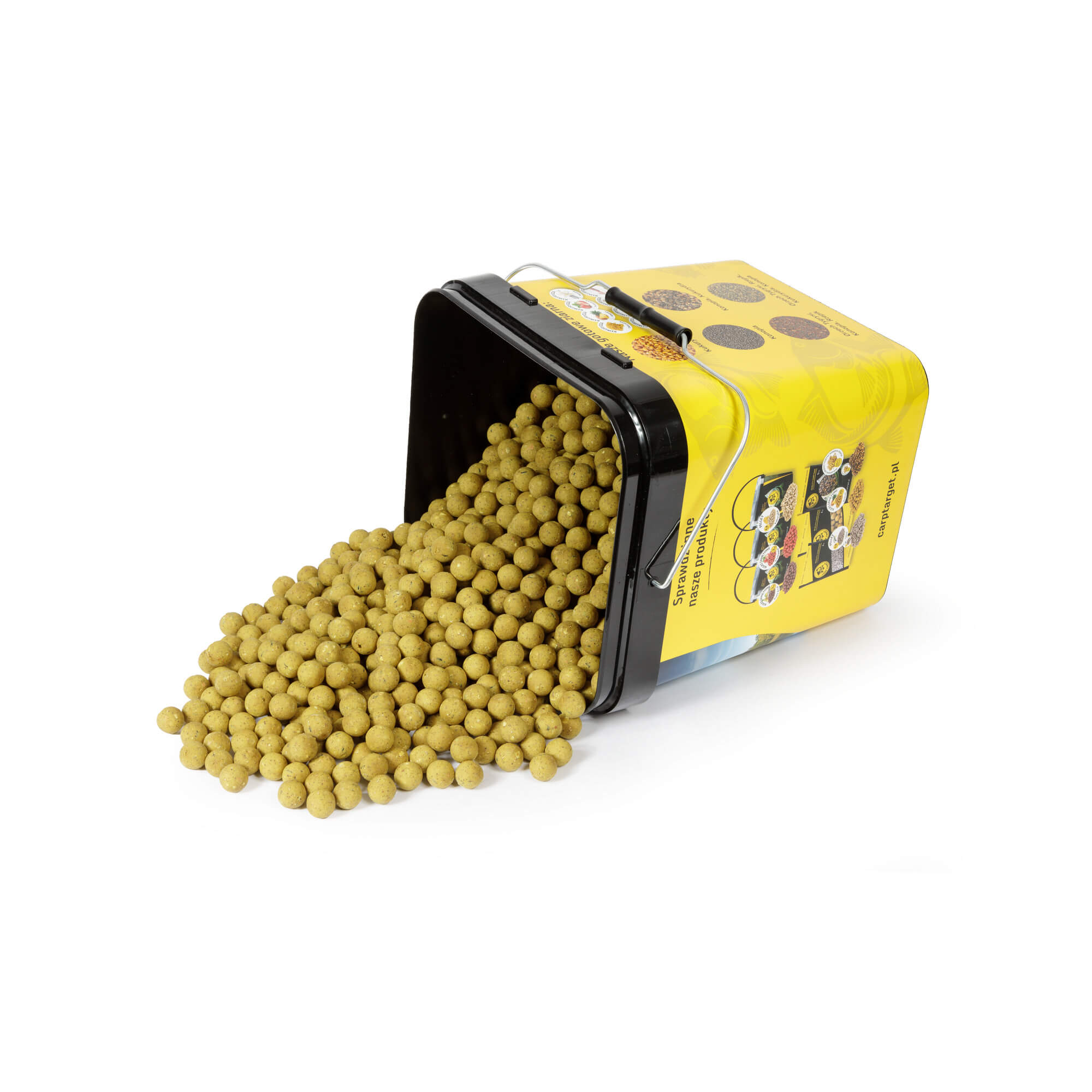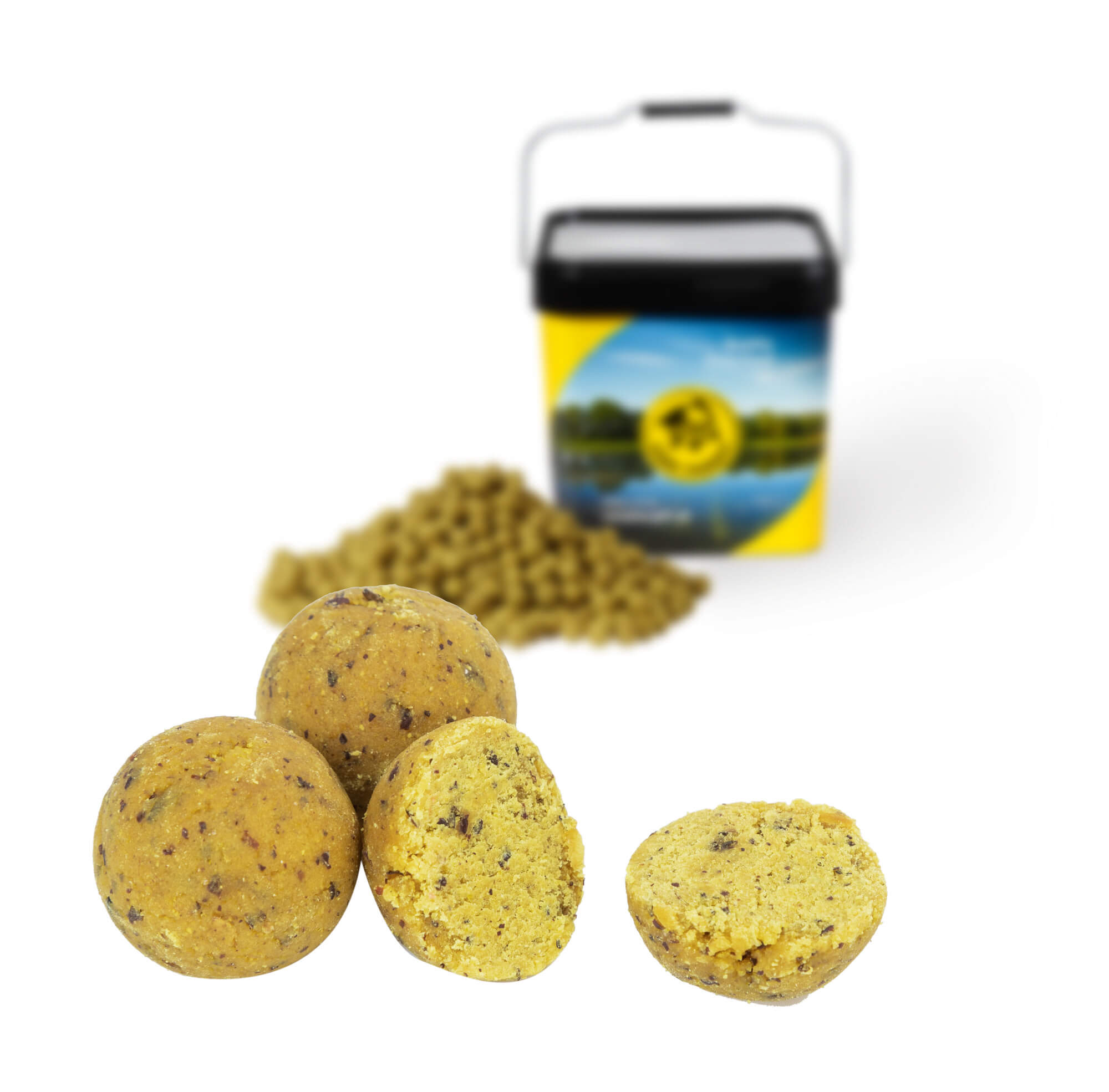 Die 24-mm-Ananas-Boilies bieten Karpfen ein wahres Festmahl. Sie enthalten reichlich Protein, Fette, Kohlenhydrate und süße Aromen, wodurch sie das ganze Jahr über effektiv sind – besonders im Frühling und Sommer, wenn Karpfen aktiv nach süß duftender Nahrung suchen.