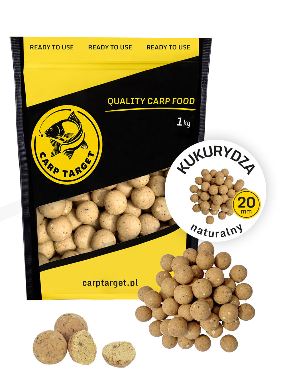 Die Boilies Mais Natur in einer Größe von 20 mm sind eines der am häufigsten verwendeten Köder und Lockmittel für Karpfen und Amur. Dieses gebrauchsfertige Produkt mit einer reichhaltigen, natürlichen Zusammensetzung wird viele große Fische ans Wasser locken. Du findest es im Angebot des Karpfenangelspezialgeschäfts Carp Target.