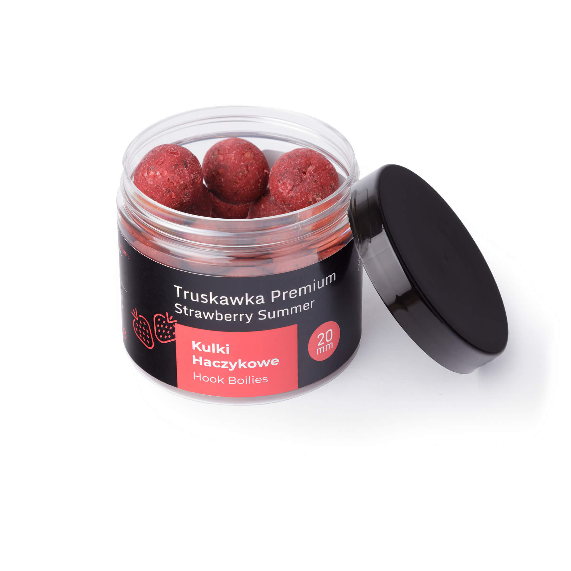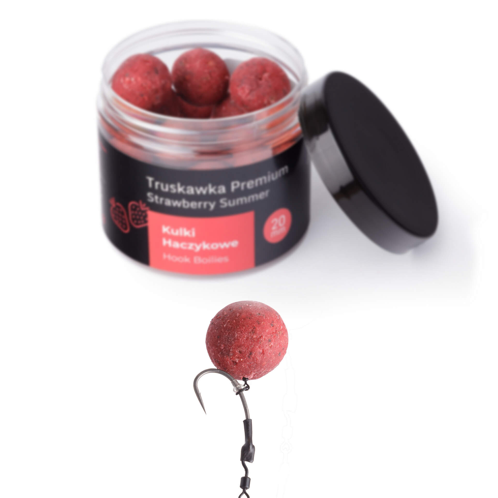 Die Größe von 20 mm bewährt sich das ganze Jahr über, insbesondere wenn Sie Jagd auf große und vorsichtige Exemplare machen. Es sind gute Karpfen-Hakenköder, die Fische effektiv anlocken, selbst bei geringer Fressaktivität. Um die Effizienz beim Angeln zu steigern, lohnt es sich, sie mit einem Lockfutter desselben Aromas zu kombinieren. Das in unserem Angelshop angebotene Erdbeer-Lockfutter harmoniert hervorragend mit den Boilies, erzeugt eine durchgehende Duftwolke und hält die Fische länger am Platz.