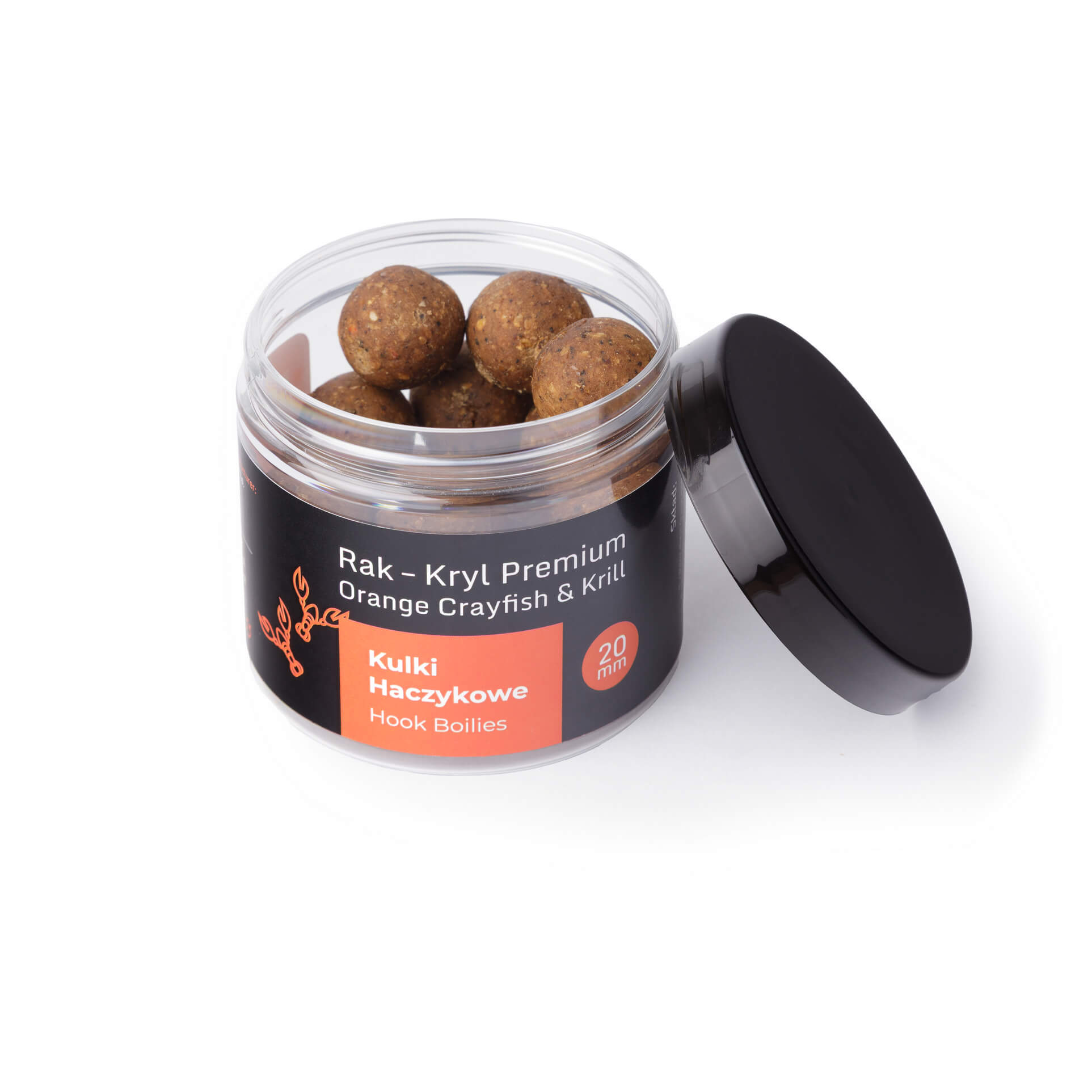 Hakenköder Krebs 20 mm – Charakteristik Die Angel-Hakenköder Krebs 20 mm wurden speziell für den Fang großer Karpfen und Amure entwickelt. Ihre Zusammensetzung basiert auf Premium-Mehlen wie Krebsmehl und Red Halibut. Krebsmehl ist eine außergewöhnliche Zutat, die Karpfen lieben, da Krebse ihre natürliche Nahrung darstellen. In der Struktur der Boilies sind gemahlene Krebspanzer deutlich sichtbar, was die Natürlichkeit und das intensive Aroma zusätzlich unterstreicht.