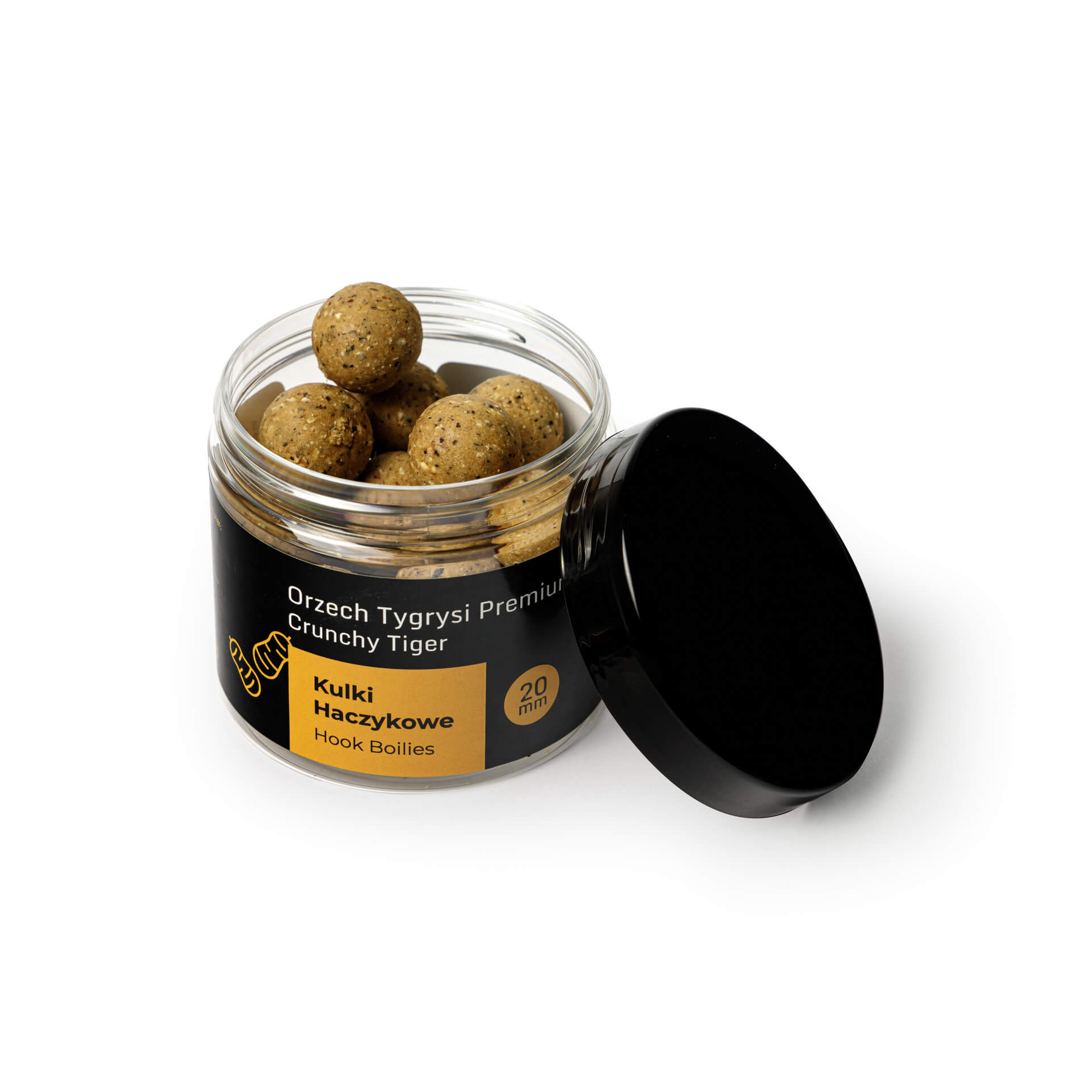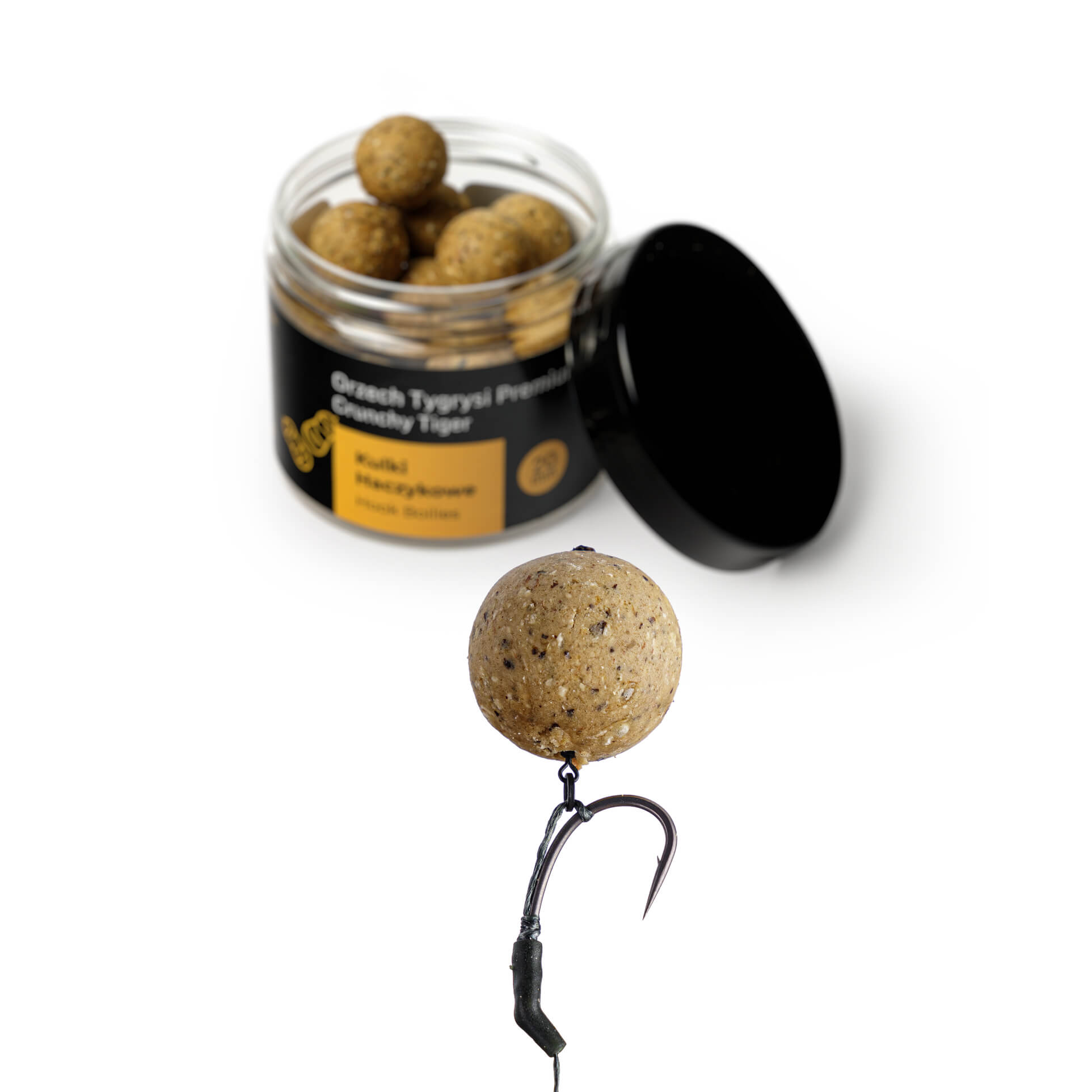 Die Hakenkugeln Tigernuss 20 mm sind ein außergewöhnlicher Köder für Angler, die die bewährte Wirksamkeit der Tigernuss nutzen möchten. Dank eines hohen Anteils an Tigernussmehl und grob gemahlener Tigernuss sowie zusätzlichem flüssigem Tigernussextrakt besitzen diese Kugeln einen intensiven Geschmack und Aroma, das selbst die vorsichtigsten Karpfen und Amuren anzieht.