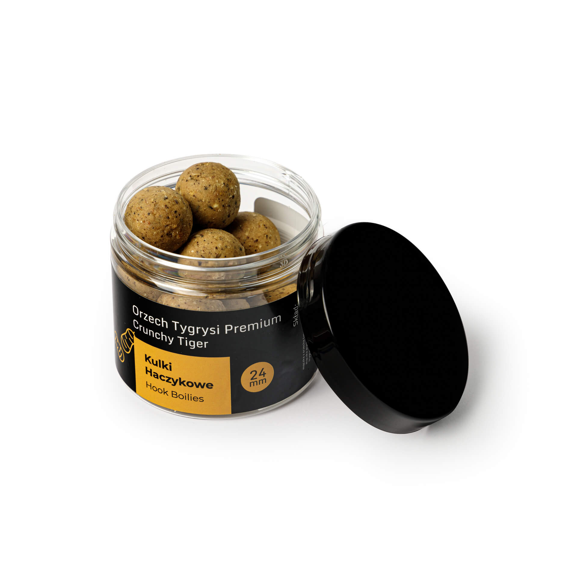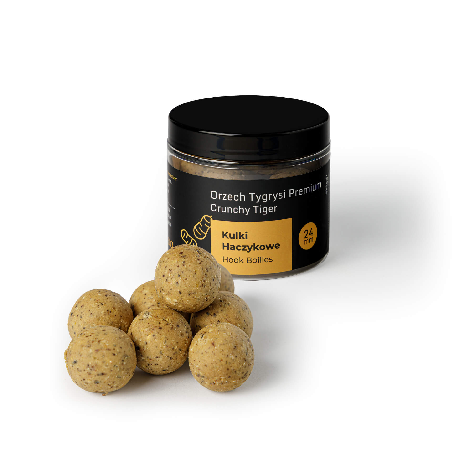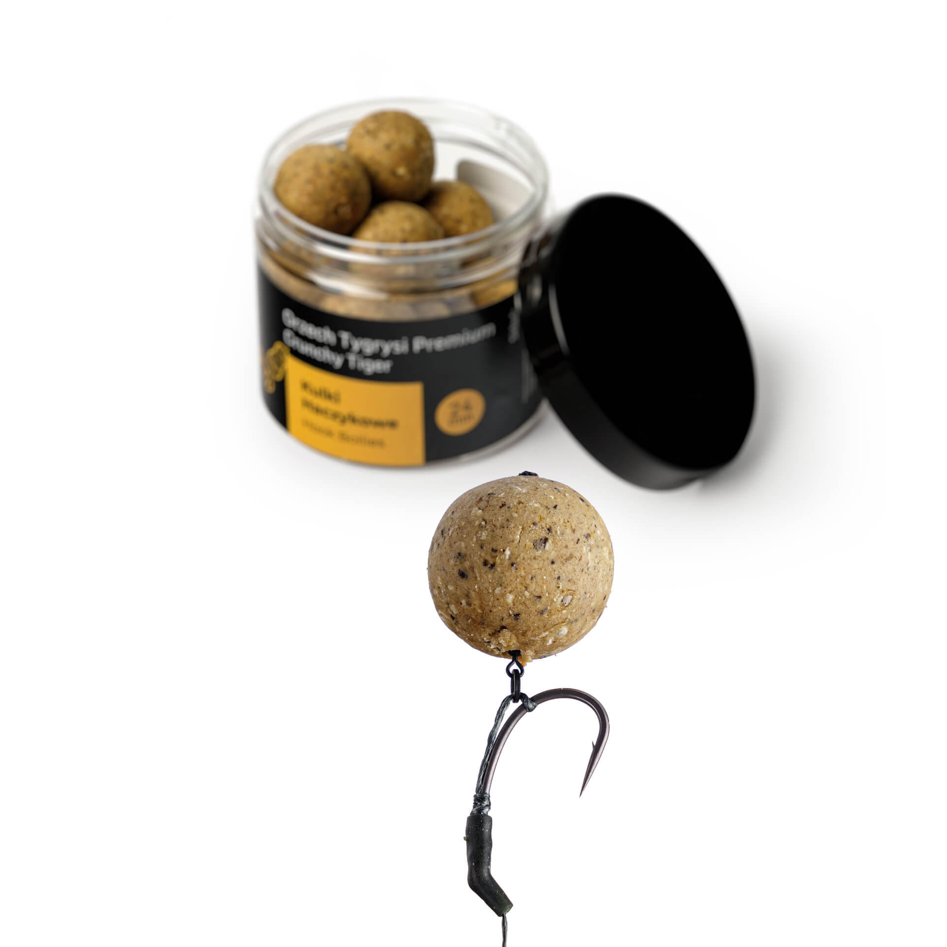 Die Hakenkugeln Tigernuss 24 mm sind ein außergewöhnlicher Köder, entwickelt für Angler, die die bewährte Wirksamkeit der Tigernuss nutzen möchten. Dank eines hohen Anteils an Tigernussmehl sowie grob gemahlener Tigernüsse und der Zugabe von flüssigem Tigernuss-Extrakt besitzen diese Kugeln einen intensiven Geschmack und ein starkes Aroma, das selbst die vorsichtigsten Karpfen und Amur-Fische verführt.