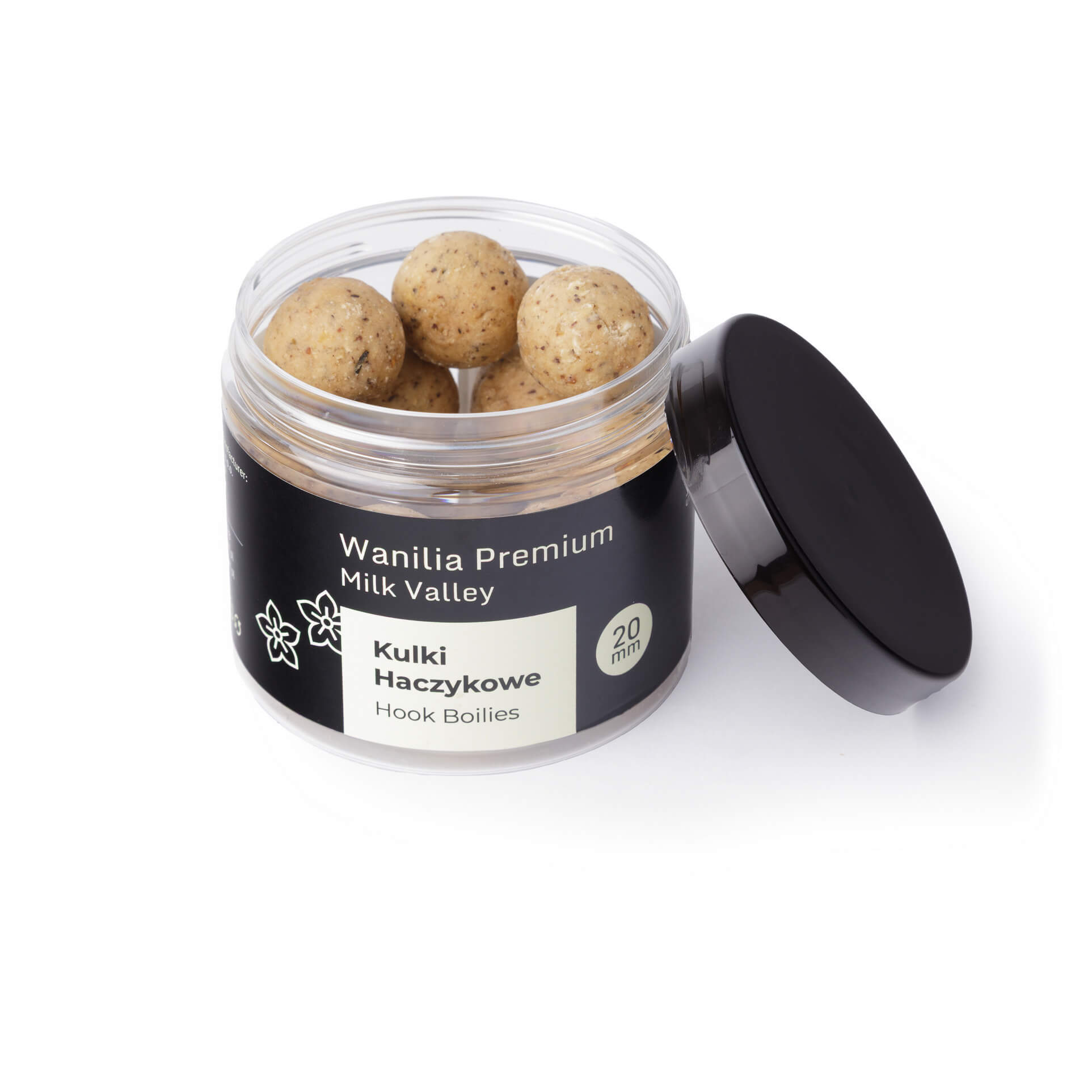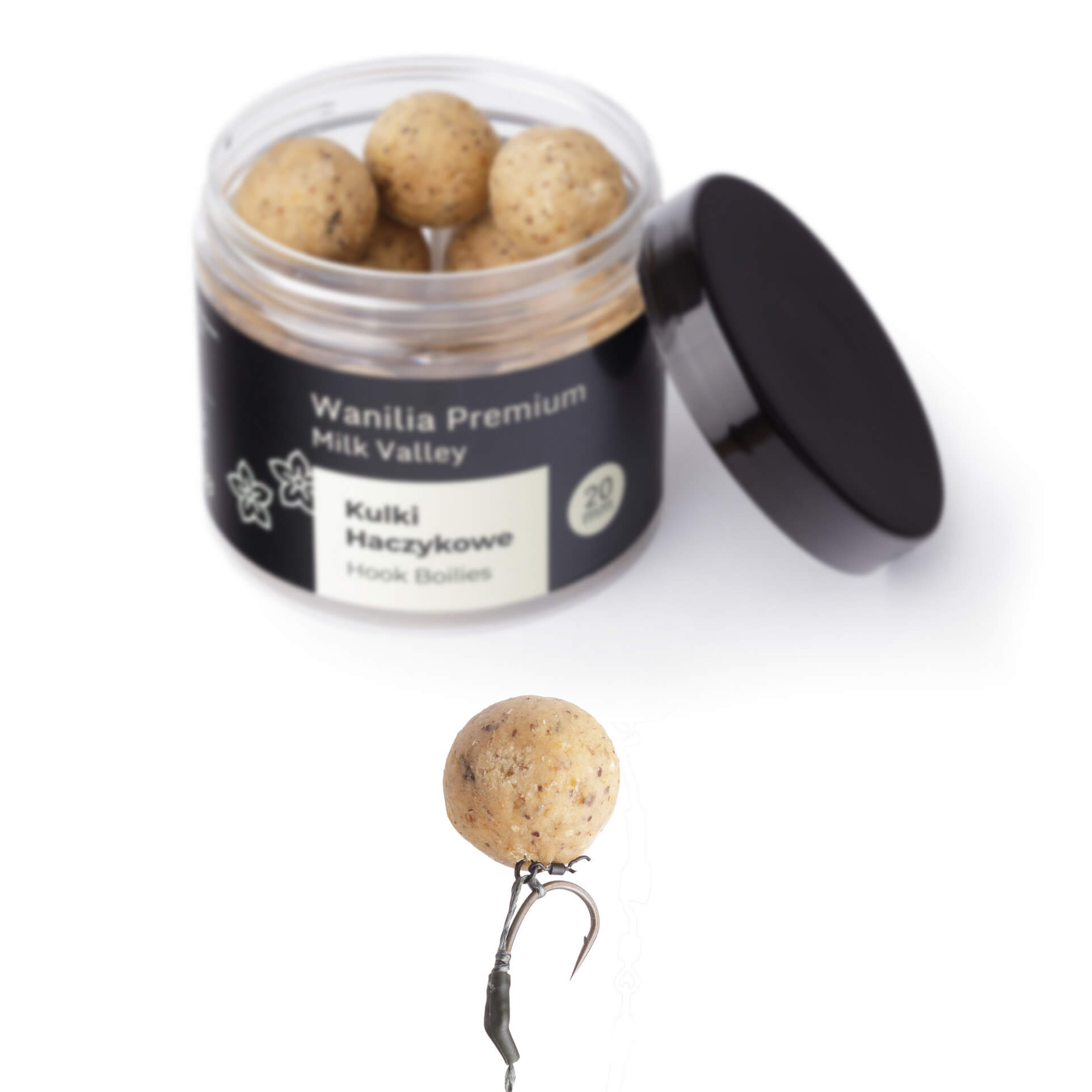 Die Vanille Premium 20 mm Hakenköder können sowohl einzeln als auch in Kombination mit Pop-Up-Boilies verwendet werden. Die Größe von 20 mm ist ideal, um selektiv größere Exemplare zu fangen und kleinere Fische zu meiden. Wenn Sie eine längere Session planen, können Sie sicher sein, dass die Boilies ihre Eigenschaften bis zu 48 Stunden lang behalten. Um die Wirksamkeit zu steigern, lohnt es sich, sie mit Lockfutter ähnlichen Aromas zu kombinieren, wie beispielsweise unserem Vanille-Lockfutter.