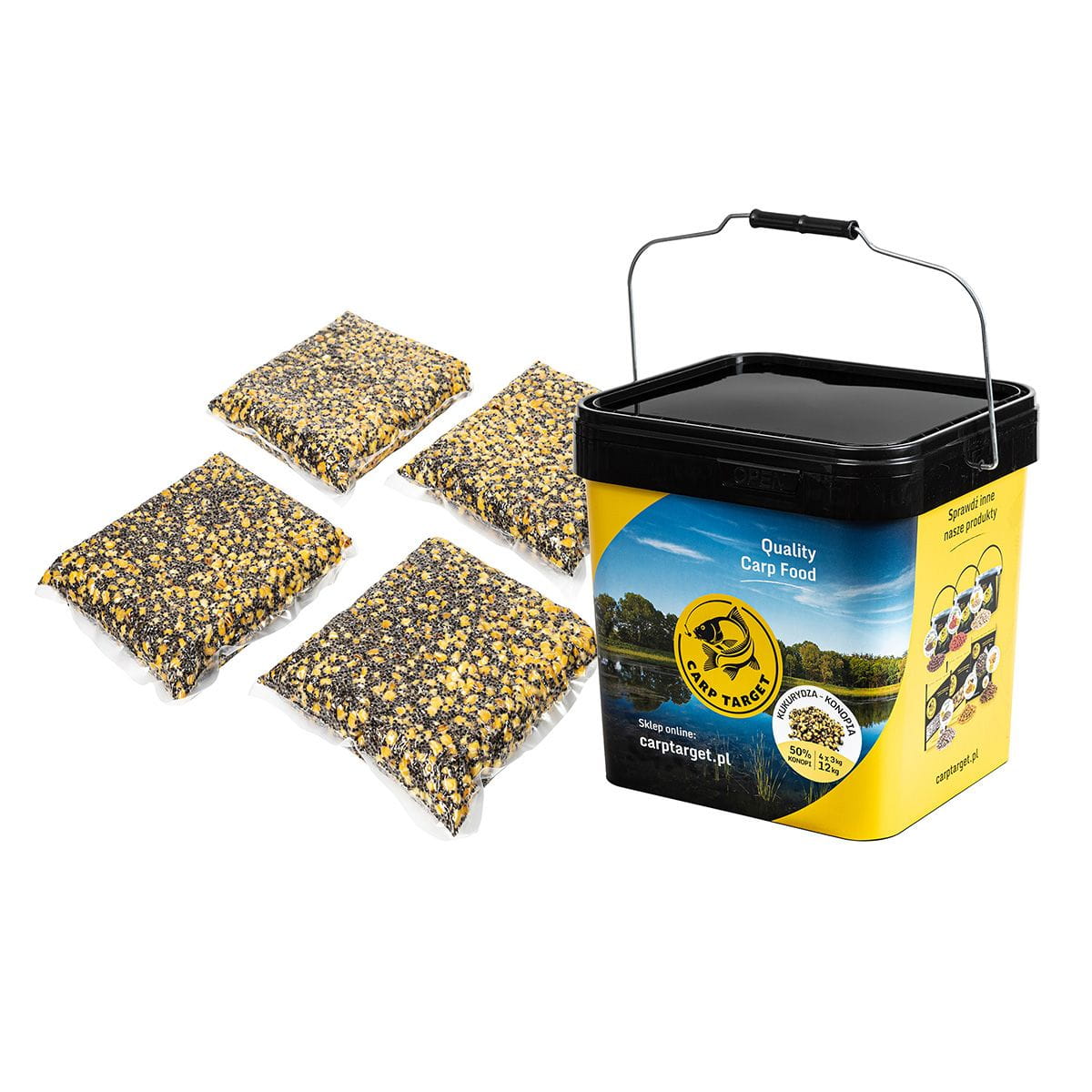 Mix Partikel 12 kg – Zuverlässige Zusammensetzung Unser Mix besteht zu gleichen Teilen aus Mais und Hanf – eine Kombination, die unter allen Bedingungen funktioniert, unabhängig von der Jahreszeit. Die gebrauchsfertigen Partikel sind bereits gekocht und mit größter Sorgfalt verpackt, um ihr natürliches Aroma und ihre Wirksamkeit zu bewahren. Eine solche Mischung lockt nicht nur Karpfen an, sondern auch andere Karpfenfische wie Schleien, Brassen oder Rotaugen. Die Anwendung der Partikel ist denkbar einfach – es genügt, den Eimer zu öffnen und das Lockfutter direkt am Gewässer zu verwenden.