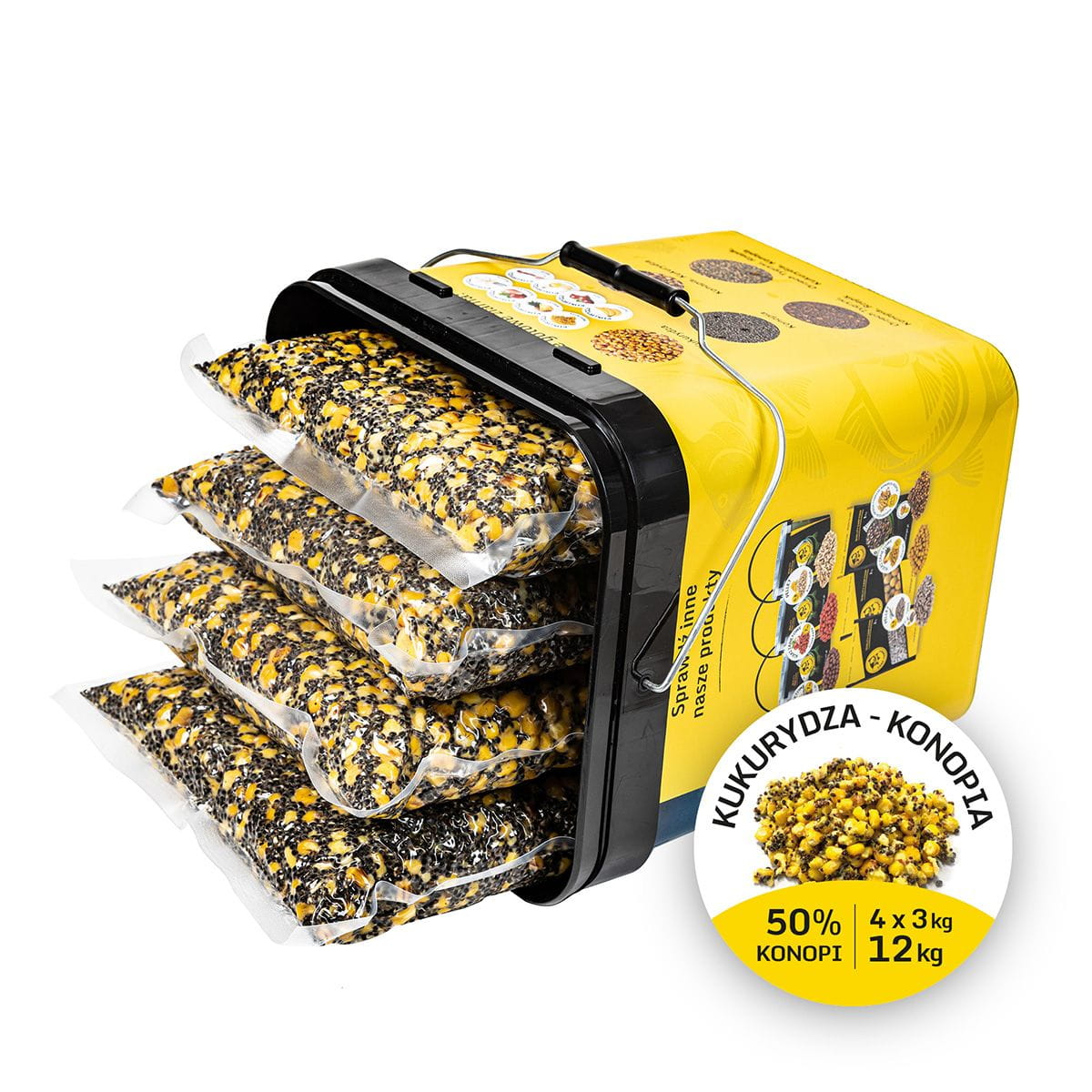Mix Partikel Mais & Hanf 12 kg (4 x 3 kg) + 17 l Eimer
