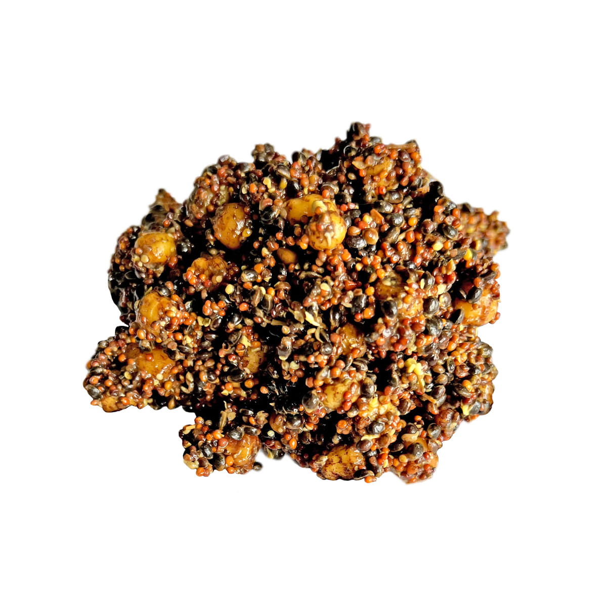 Lockfutter aus Tigernüssen, Hanf und Raps – Eine Zusammensetzung, die Fische anzieht Dieses mit Tigernüssen angereicherte Lockfutter ist das Rezept für eine hohe Fangeffizienz. Die Tigernuss ist reich an Zucker und Fetten, was sie für Fische nicht nur attraktiv, sondern auch nahrhaft macht. Futterhanf fügt der Mischung viel Protein sowie ein Aroma und einen Geschmack hinzu, die für Karpfen schwer zu ignorieren sind. Die als Raps bekannten Samen sind eine weitere Zutat, die die Komposition vervollständigt und sie mit Vitaminen und Mineralien ergänzt. In der Zusammensetzung dieses Lockfutters finden Sie keinen Mais, wodurch Sie Bisse von Brassen und Kleinfischen vermeiden können.