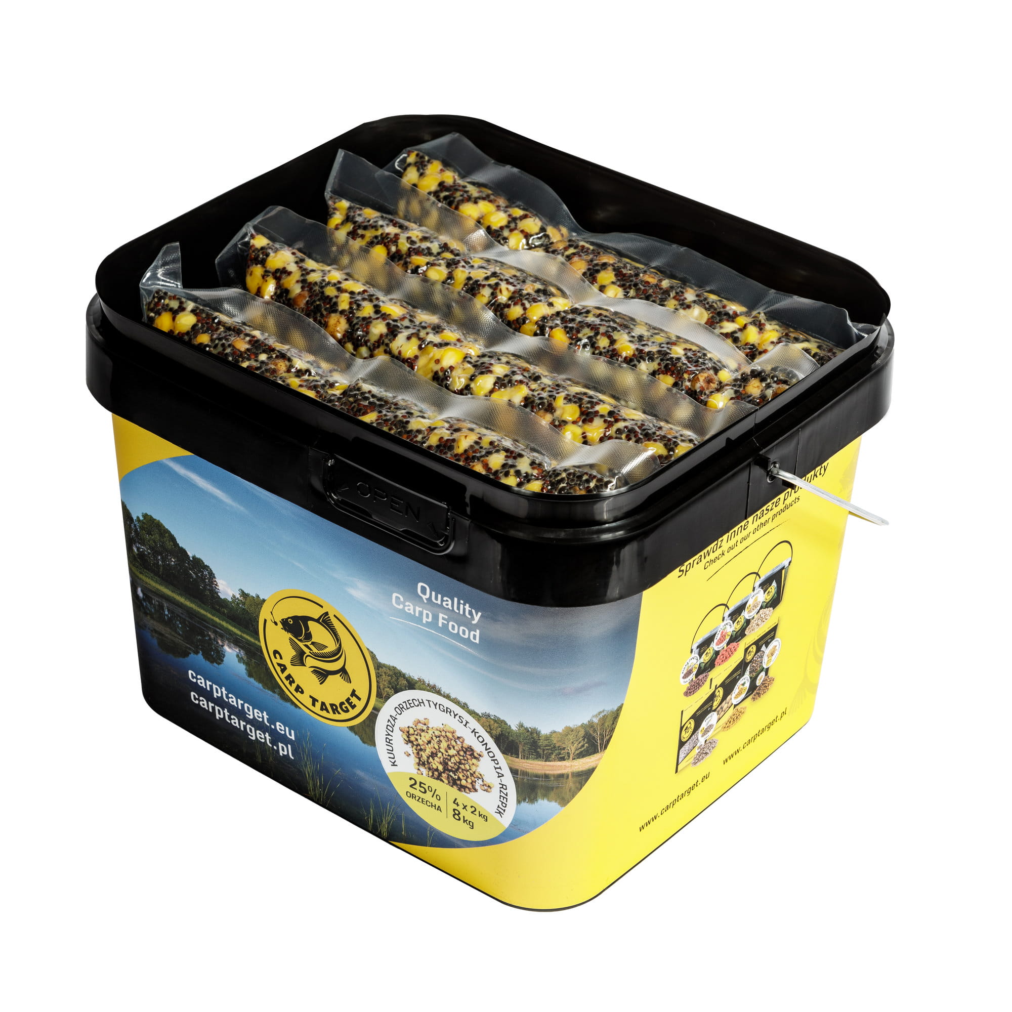 Unser Saatenmischung 8 kg ist eine sorgfältig ausgewählte Komposition aus gekochten Körnern. Sie enthält 25 % Tigernuss, bekannt für ihre außergewöhnlich starke Lockwirkung auf große Karpfen, 25 % Hanfsamen für Fische als natürliche Quelle von Eiweiß und Fetten, 30 % Mais für Fische, der die Grundlage der Ernährung vieler Fischarten bildet, sowie 20 % Raps, der die Futtermischung zusätzlich bereichert. Dank dieser reichhaltigen Zusammensetzung ist unser Köder äußerst attraktiv für Fische und liefert ihnen energiereiche Nahrung, die sie nicht nur anlockt, sondern auch lange am Angelplatz hält.