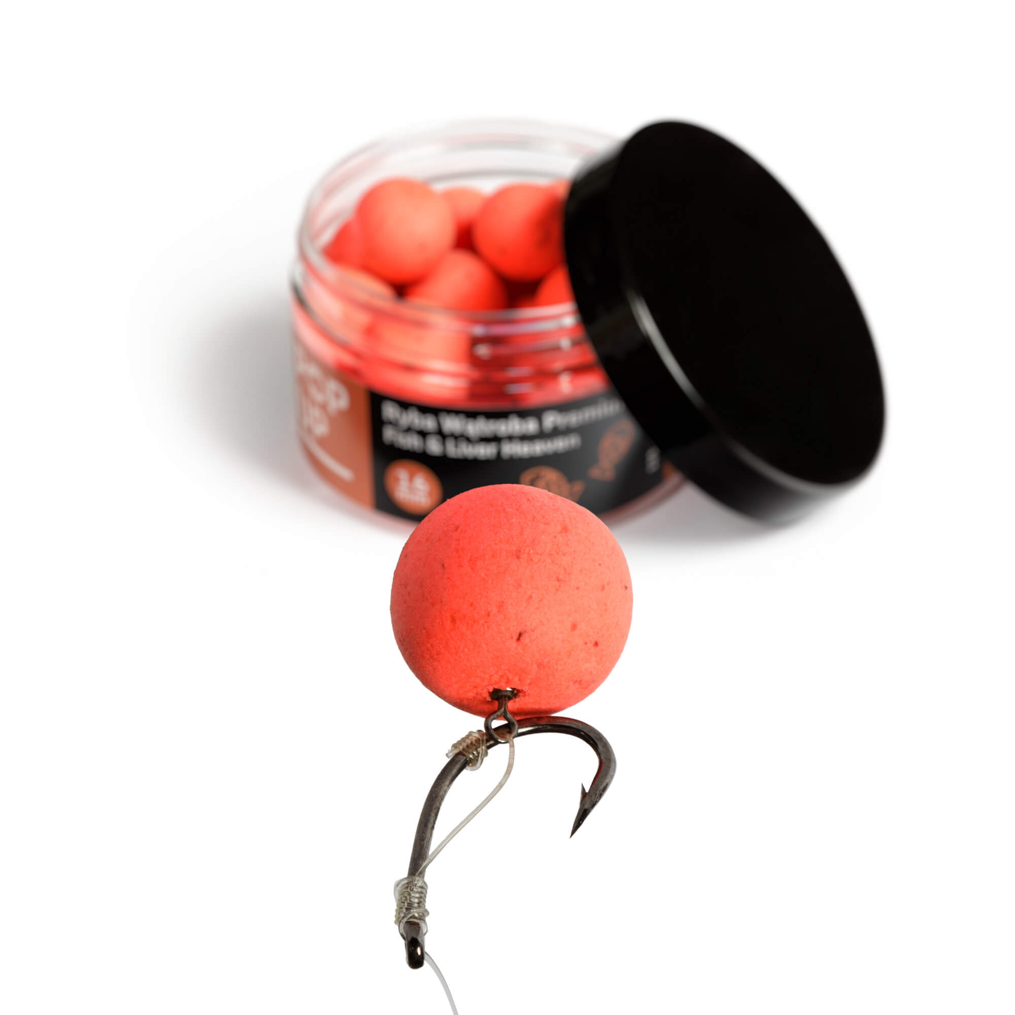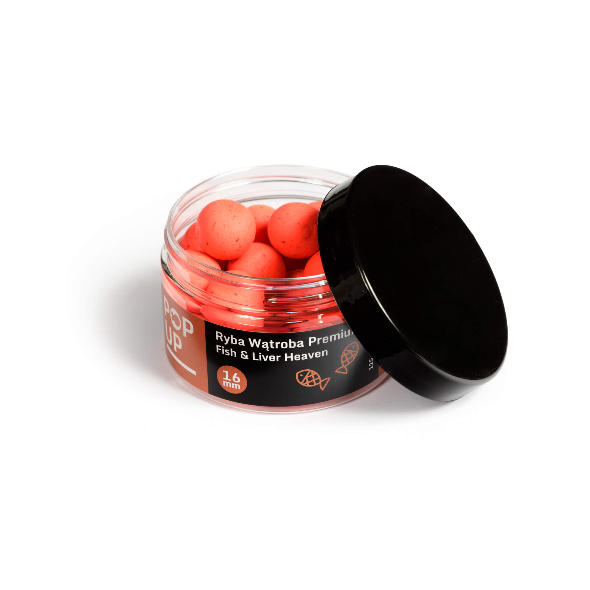 Die POP UP Boilies „Fisch + Leber“ 16 mm sind speziell entwickelte Köder, die über dem Grund schweben und so die Aufmerksamkeit der Fische durch Sichtbarkeit und Duft auf sich ziehen. Dank ihrer ausgewogenen Schwimmfähigkeit bleiben die Boilies über längere Zeit an der Oberfläche, auch mehrere Tage, und sind besonders effektiv bei längeren Angel-Sessions.