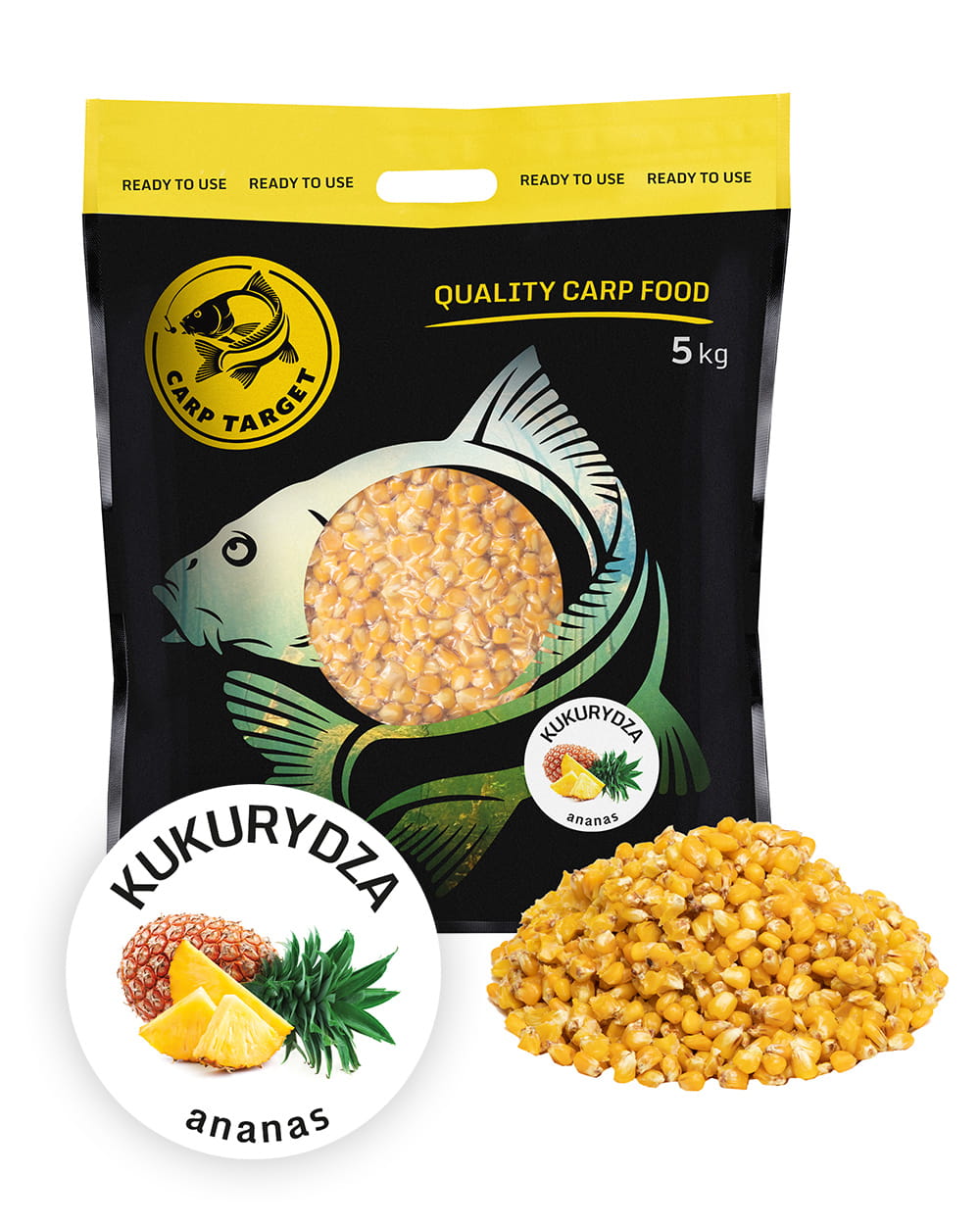 Bei Carp Target achten wir darauf, dass die Maiskörner während der thermischen Verarbeitung ihre natürlichen Eigenschaften und die optimale Härte behalten, damit sie beim Mischen mit anderem Futter nicht zerfallen. Unser gekochter Angelmais Ananas ist für die Fische sicher, leicht verdaulich und animiert sie zur regelmäßigen Rückkehr an den Futterplatz. Da die richtig vorbereiteten Körner zudem von Kleinfischen eher gemieden werden, steigen Ihre Chancen auf einen wirklich kapitalen Fang.