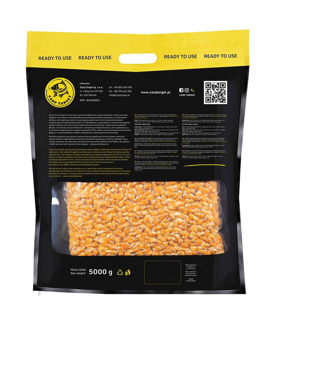 Gekochte Maiskörner von Carp Target sind ein hervorragendes Lock- und Hakenfutter für Karpfen, Graskarpfen und andere Friedfische. Unser Kochmais ist eine spezielle, großkörnige Sorte, die exakt auf den Punkt gegart und für maximale Frische vakuumverpackt wurde. Der Angelmais mit Erdbeer-Aroma lockt die Fische effektiv an und hält sie lange am Futterplatz. Die Angelpartikel, die unser Karpfen-Onlineshop anbietet, sind sofort nach dem Öffnen einsatzbereit – du musst also keine Zeit für die Vorbereitung des Futters aufwenden. Zudem erhältst du die Garantie für ein bewährtes Produkt von höchster Qualität.