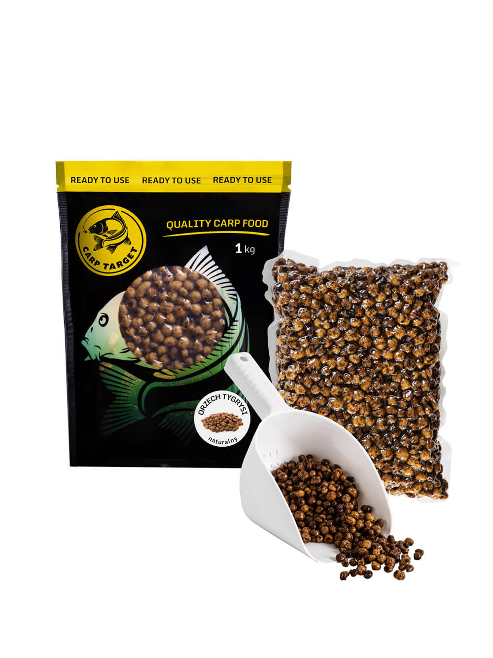Die große Packung gekochter Tigernüsse ist die ideale Wahl für längere Ansitze oder intensives Anfüttern. Die sorgfältig ausgewählten Nüsse in der Größe 8–16 mm sind sofort einsatzbereit – einfach öffnen und verwenden.