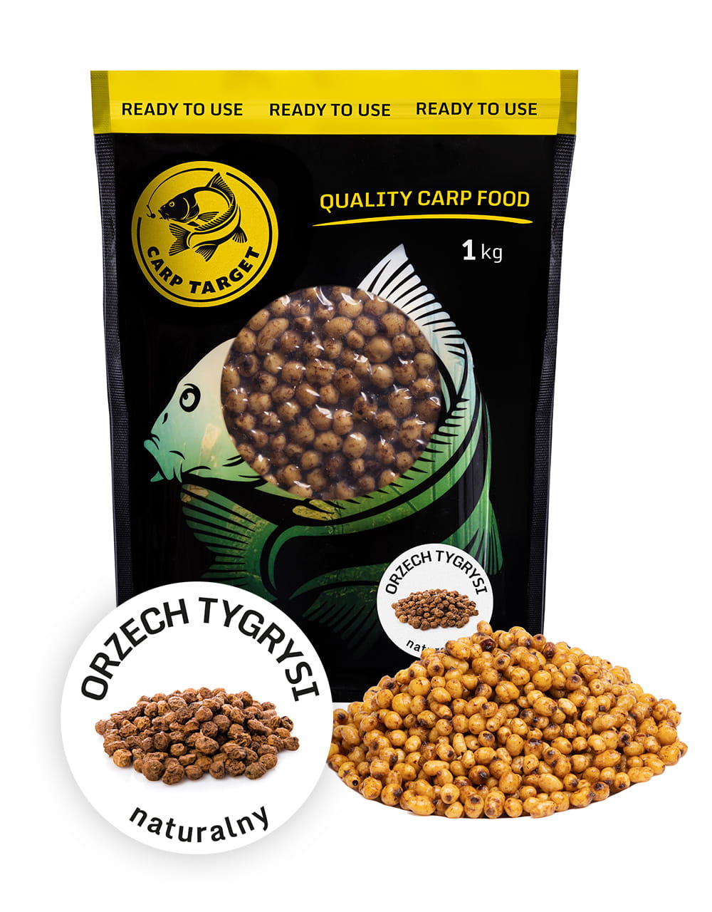 Tigernüsse für Karpfen – Hohe Effektivität beim Angeln Die Tigernuss ist eine essbare Pflanzenknolle in Form kleiner, runzeliger Kugeln mit „tigerähnlichen“ Streifen, von denen sie ihren Namen hat. Ihre Wirksamkeit verdanken Tigernüsse ihrem guten Geschmack und Geruch sowie ihrem Nährwert. Bei Carp Target bieten wir professionell zubereitete Tigernuss-Körner an, die direkt aus der Verpackung einsatzbereit sind. Sie sind eine großartige Lösung, besonders wenn Sie keine Zeit haben, die Partikel selbst zuzubereiten, oder wenn Sie sicher sein wollen, dass sie richtig vorbereitet sind. Was zeichnet unsere Tigernuss-Körner für Karpfen aus?