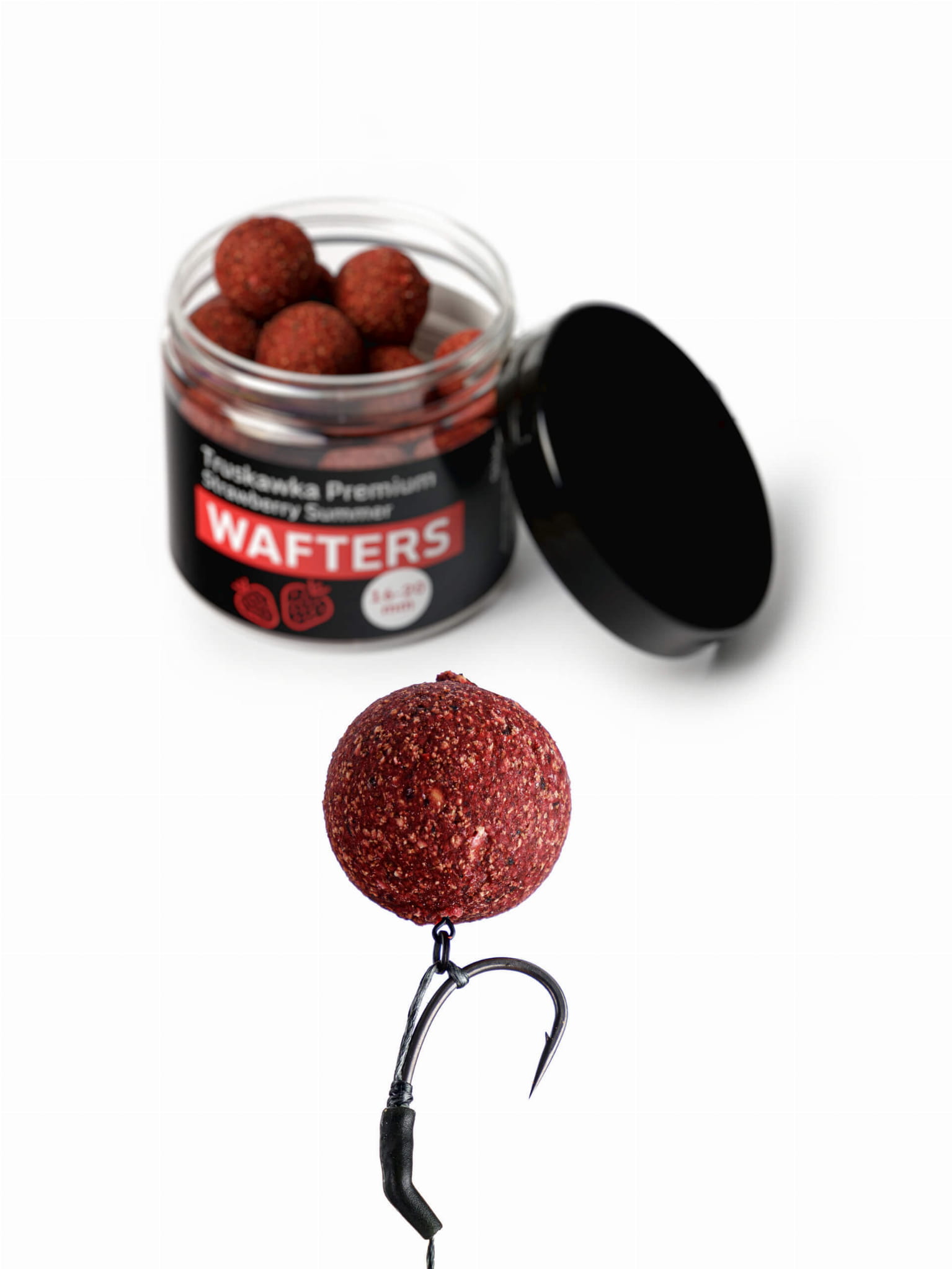 In dieser Kategorie finden Sie Wafters Erdbeere in Verpackungen mit zwei Größen – 16 mm und 20 mm. So können Sie den Köder an die jeweilige Methode und das Endrig anpassen. Dank des leichten Auftriebs schweben die Kugeln knapp über dem Grund, wirken dabei natürlich und verführerisch für die Fische. Ihre Vorteile liegen nicht nur in der Wirkung im Wasser, sondern auch im langanhaltenden, intensiven und süßen Duft, der über viele Stunden erhalten bleibt.
